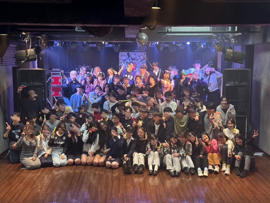 軽音部が中心となって、複数のバンドが演奏をしました。最後は観客全員で肩を組みながら合唱し、会場全体が一体となって盛り上がりました!