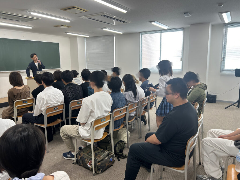 今井氏は専門職大学客員教授も務めており、プレゼンテーションは生業ともしているため、生徒たちは話にどんどん引き込まれていき、メモを取り熱心に聞いている生徒も多くいました。あっという間の60分であり、「誰かのために何かやってみよう」と、自分の中に火をつけてくれるような、そんな時間になりました。