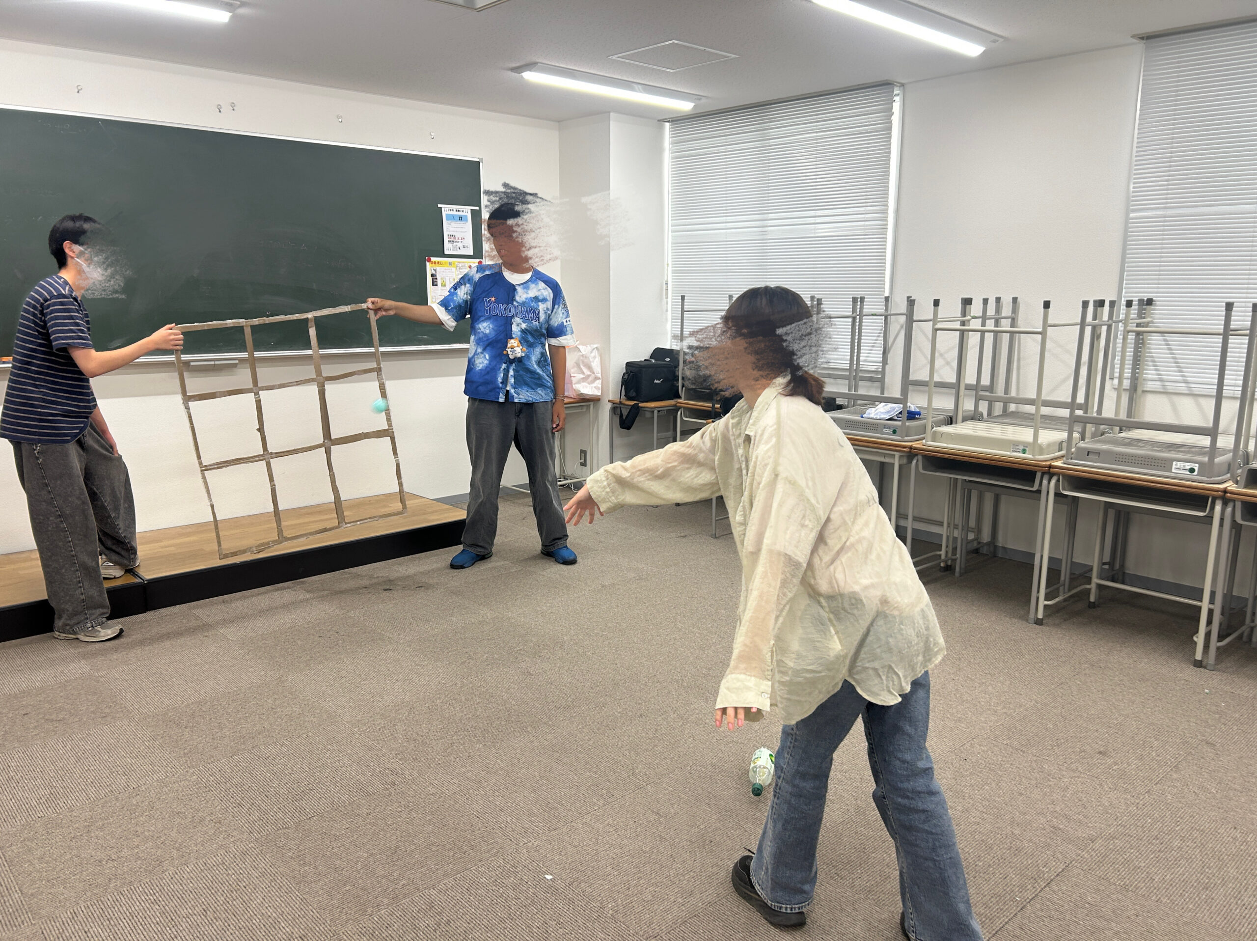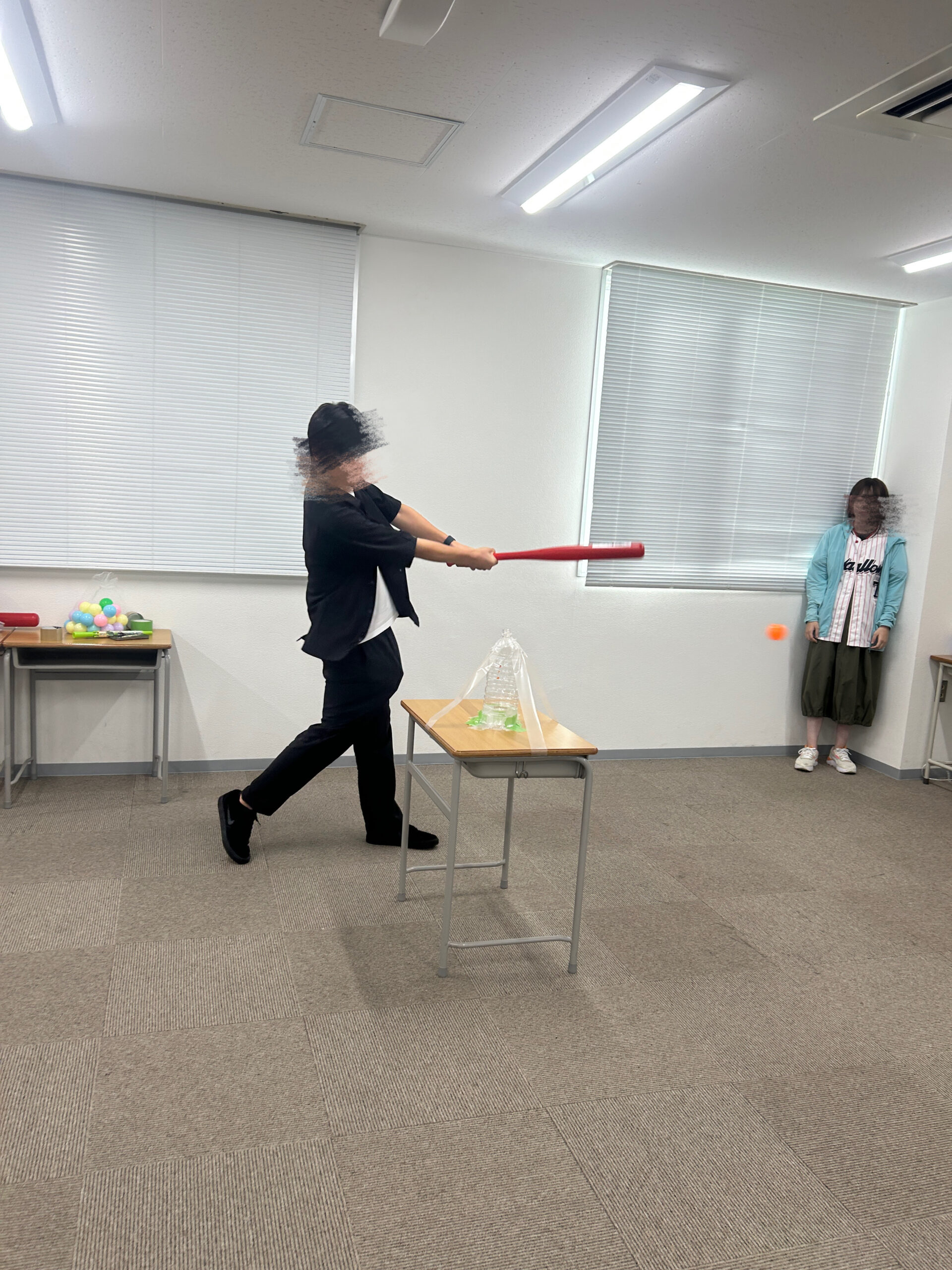 最後に、野球を体験してみようとストラックアウトやプラスチックバットでバッティングを行いました。