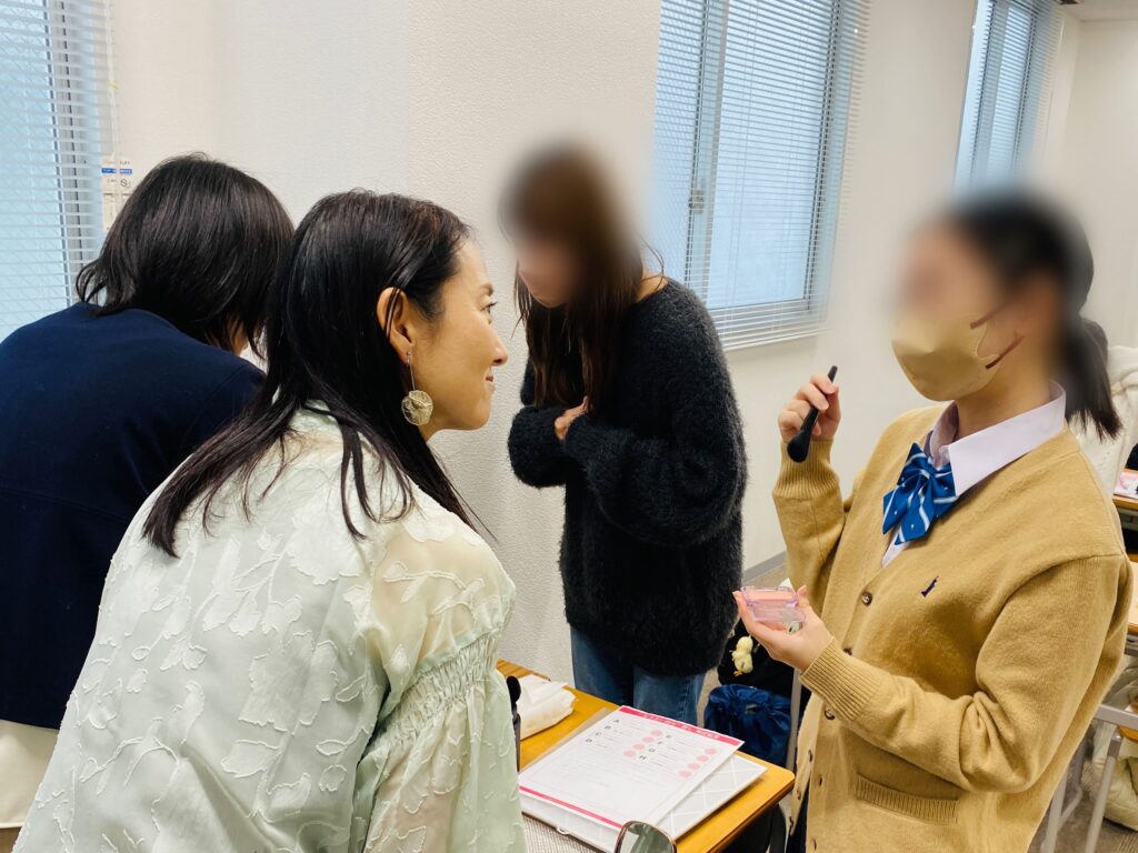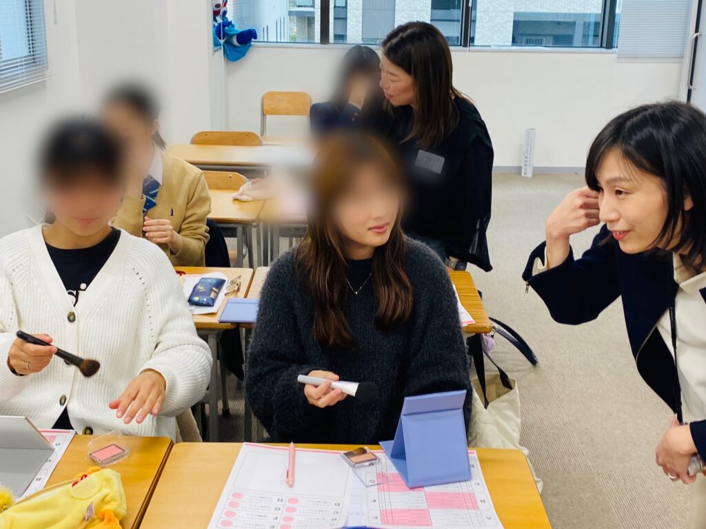 生徒たちは、メイクの力をうまく利用することで、ストレスの少ない自分らしい生き方ができるということを教えていただき、一段と前向きになれたようでした。