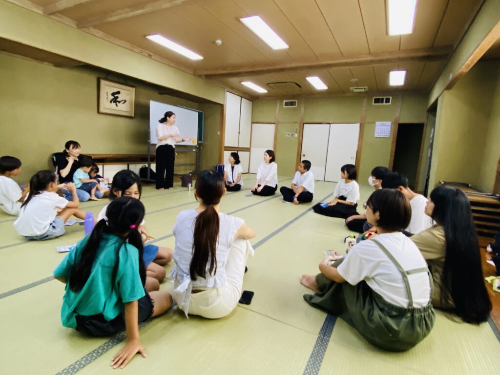 小学校1年生から子育てを終えた世代の方まで、皆が発表会について、意見を交わします。担当教員からの総括があり、それぞれに成功の喜びをかみしめました。そして、その後はフリートークで、自分の夢を語ったり、先輩からのアドバイスをいただけたり…。こんな交流の時間も、一ツ星生にとっては、かけがえのない時間です。ご一緒してくださった皆様、本当にありがとうございました。