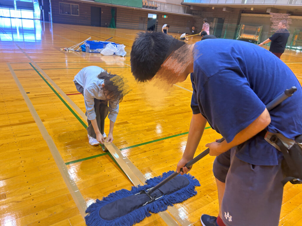 ごみ一つない会場に復元。試合終了後も作業は多くあります。