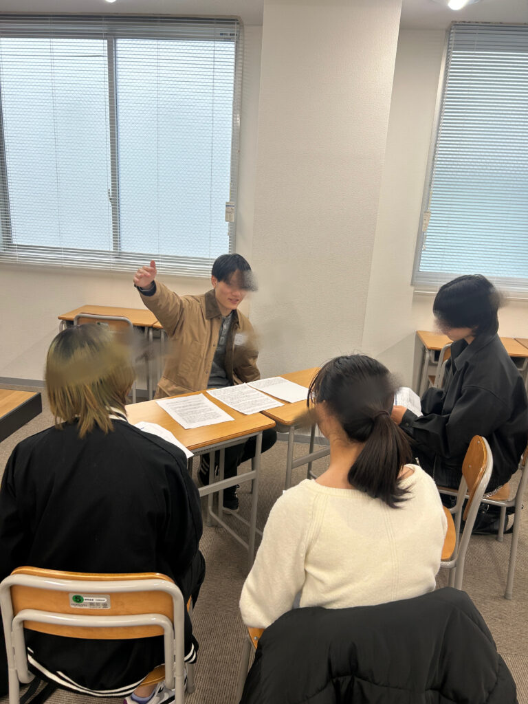 就職・専門学校・大学に合格を勝ち取った3年生から進路に関することを後輩に話すという、「郷中教育」方式で行いました(豪中教育はこちら)。