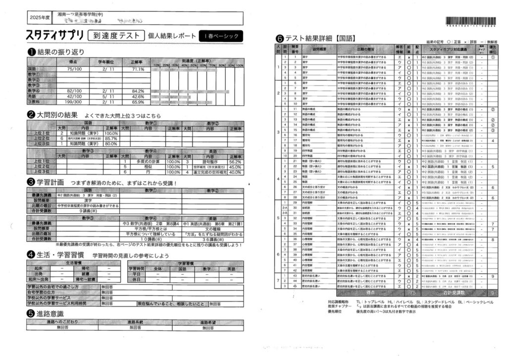 入学前に、中学内容をしっかり復習! ~到達度診断テストフィードバック~