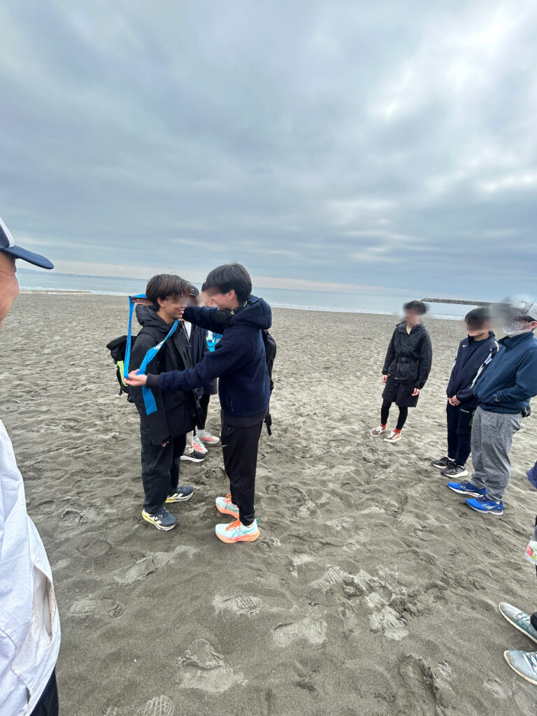 最後に、湘南一ツ星高等学院マラソン部の襷が部長から2年生の部長へ繋がれました。
