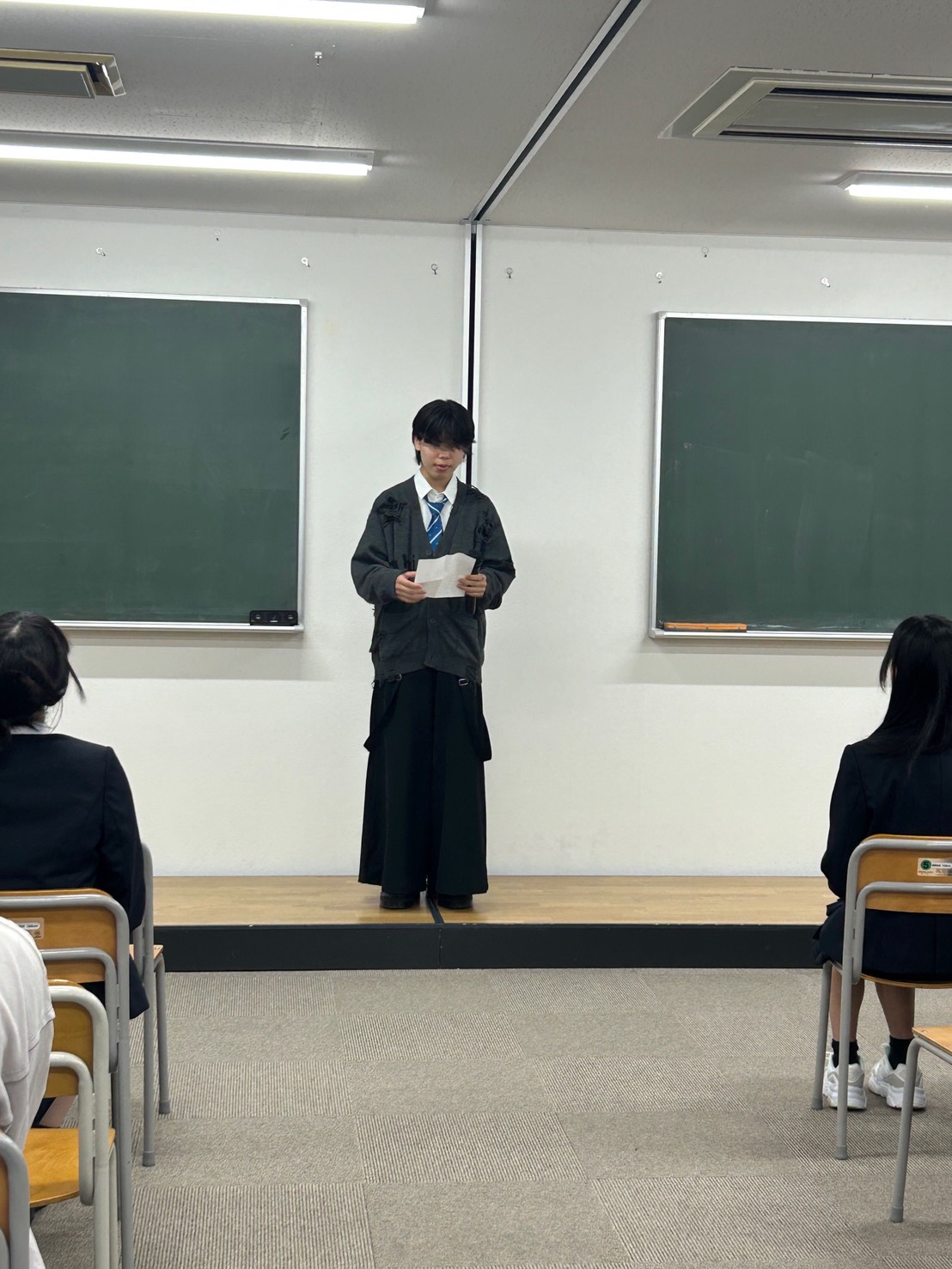 在校生代表の挨拶では、「かつての私が先輩方に救われたように、今度は私たちが皆さんの支えとなる番です。何か困難に直面したり、不安を感じたりした際には、いつでも私達を頼ってください。共に様々な事に挑戦していきましょう!」という熱いメッセージが送られました。